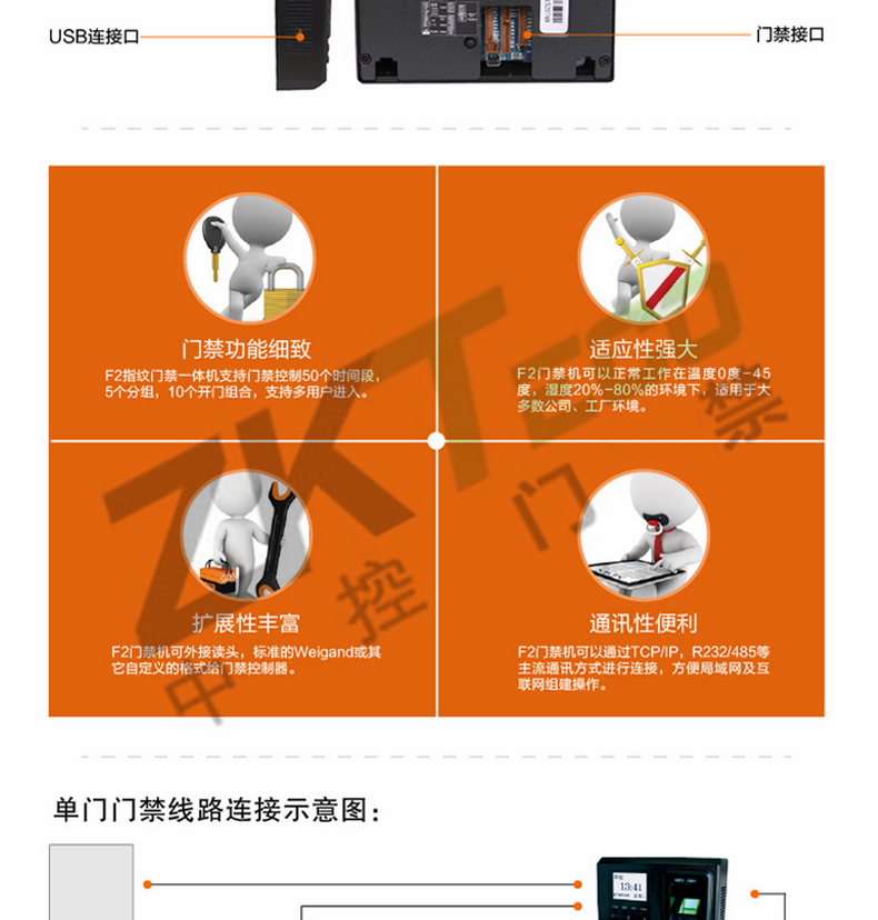 單門門禁系統 zk-f2指紋簽到打卡機