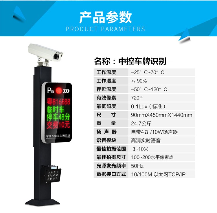 中控門禁車牌識別道閘