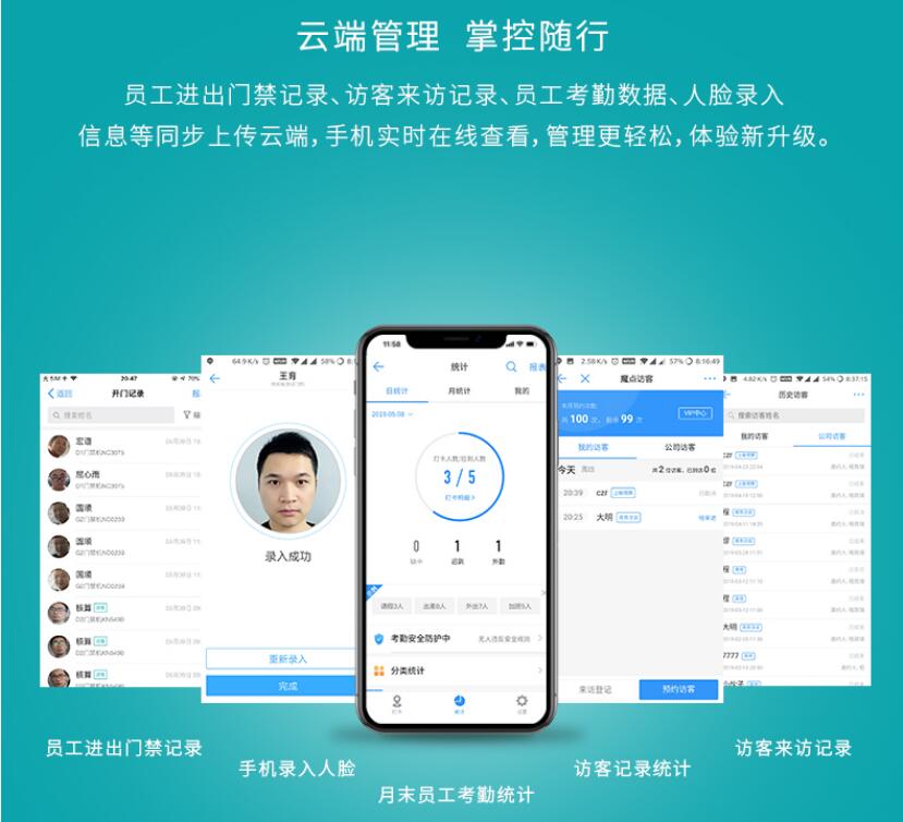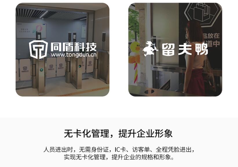 人員進出時,無需身份證,IC卡、訪客單、全程憑臉進出,實現無卡化管理,提升企業的規格和形象。